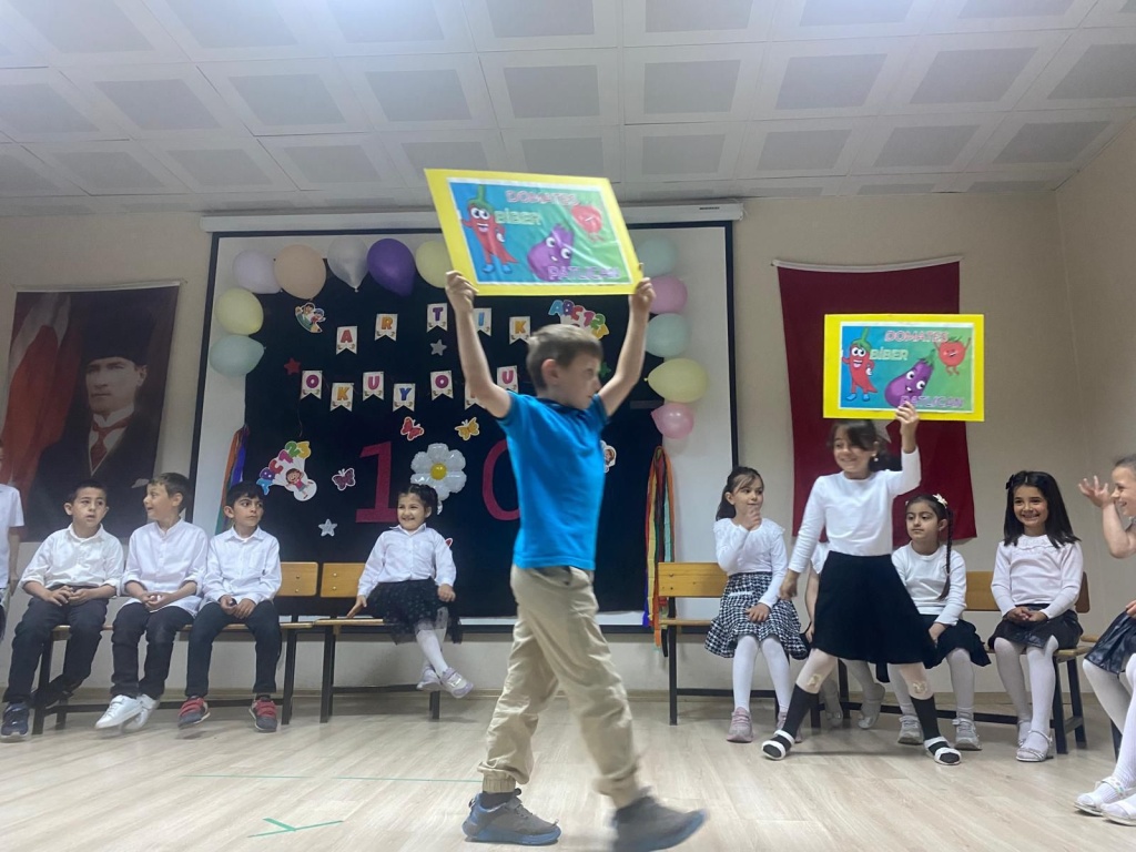 1/B ve 1/C sınıfı Öğrencileri okuma bayramında coşkulu şekilde etkinliklerini sergilediler. Artık Okuyorum rozetlerini Şube Müdürümüz Yüksel Çolak ve Okul Müdürümüz Serdar KALAYCI öğrencilere takdim etti.Öğrencilerimizi gösteriler için hazırlayan Abdullah SARIKOÇ ve Derya AYVAZ öğretmenlerimize emeklerinden dolayı çok teşekkür ederiz.